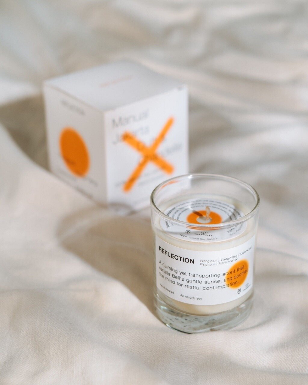 To commemorate the meditative tradition of Bali’s Nyepi or “Day Of Silence", Manual Jakarta and Duft and Chandelle have teamed up to craft a limited-edition candle “Reflection” to accompany you during this day of self reflection. Prompting calming and refreshing notes of frangipani, ylang-ylang, cedarwood, patchouli and frankicense, we hope this candle can help create an area of calm to help destress and remedy a restless mind.